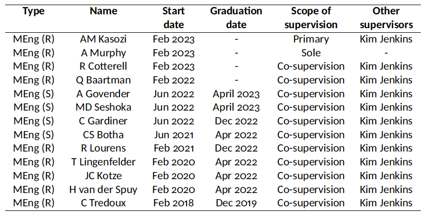 The highlights of my research career as been receiving NRF Thuthuka early-career researcher funding, a Wilhelm Frank PhD scholarship, as well as a Zuid-Afrika Scholarship to spend a semester exchange at TU Delft, NL.